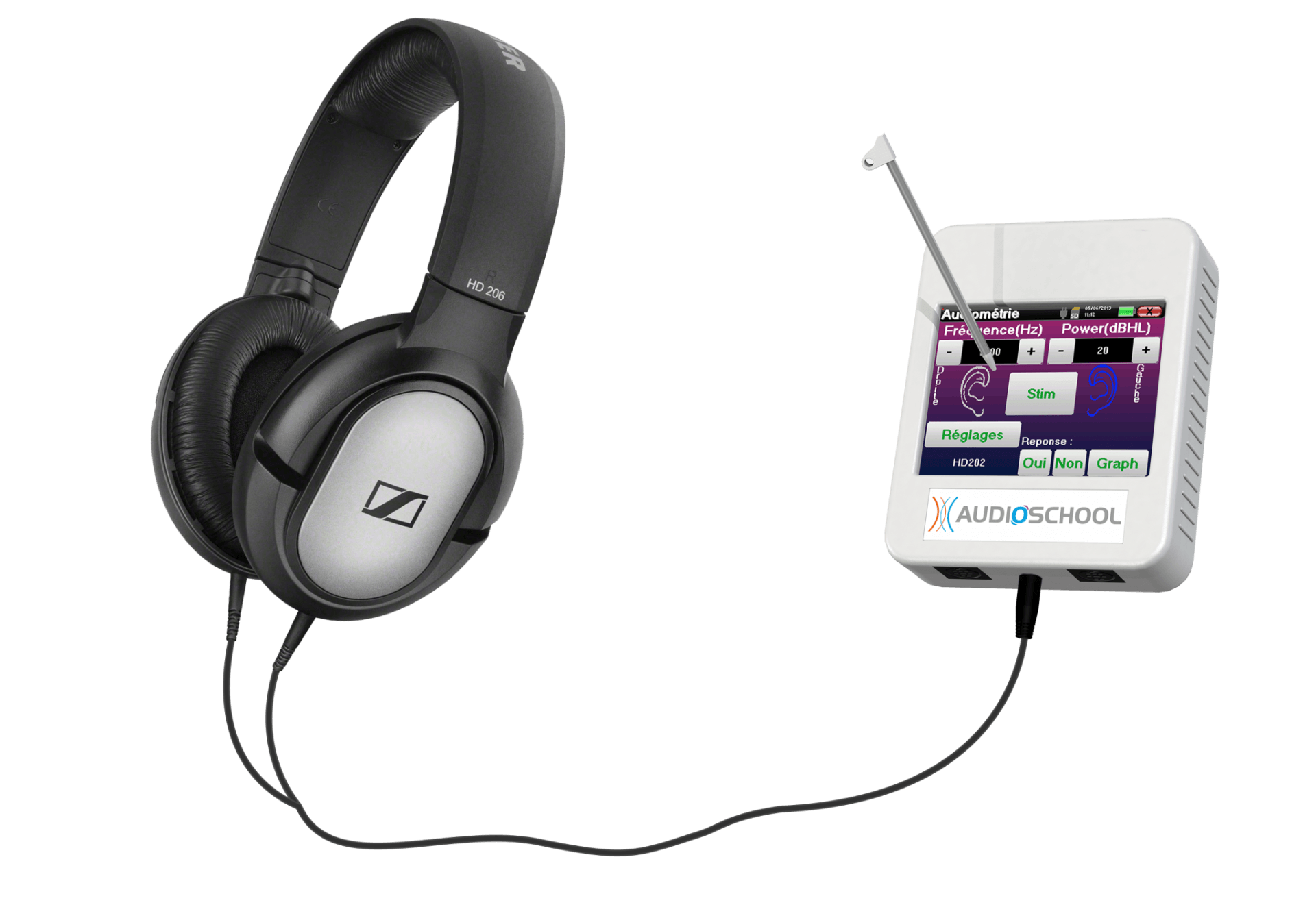 La nouveauté de cet audiomètre réside dans son mode de fonctionnement, à la fois portatif pour le mode ambulatoire (sans avoir l’usage d’un support papier) ou en fixe connecté sur un ordinateur. L'AudioSCHOOL permet de réaliser des tests rapides d’audiométrie.