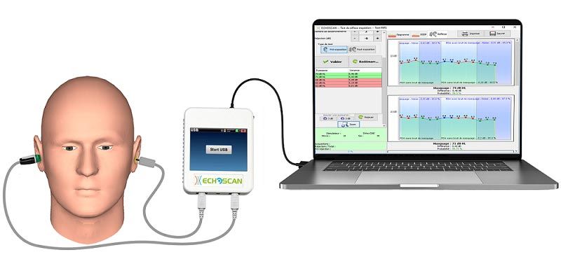 Informatisé : connecté à votre ordinateur par une prise USB, il peut piloter tous les tests depuis votre ordinateur. Avec son logiciel Echosoft-Dépistage vous gérez une base de données avec la possibilité de l’interfacer avec tous les logiciels médicaux actuels et à venir.